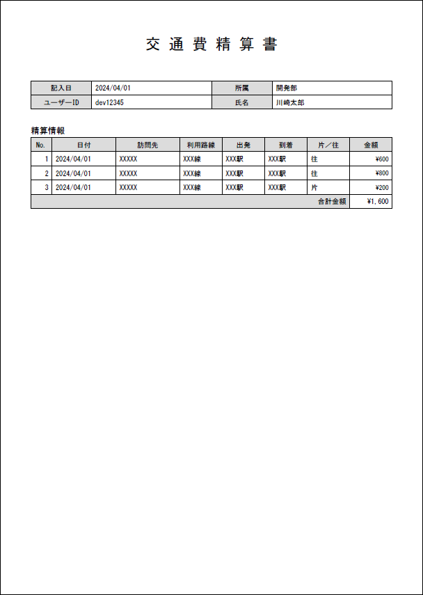 交通費精算書 |