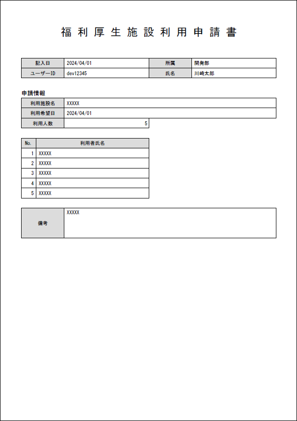 福利厚生施設利用申請書 |