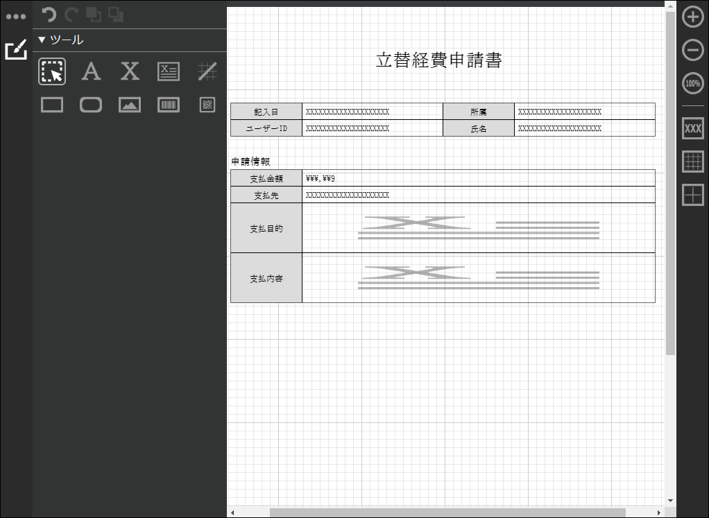 Web版帳票デザインツール は、Webブラウザ上で単票形式の帳票レイアウトファイルを作成するためのツールです。