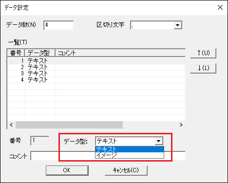 4.2.4. クライアント版帳票デザインツール IODBDOC のデータ設定画面でのデータ型は「テキスト」を選択してください¶