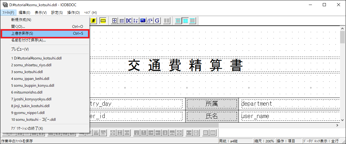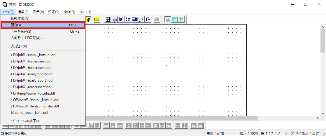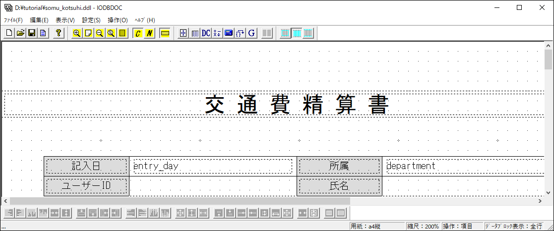 クライアント版帳票デザインツール IODBDOC を使用し、PDFファイルの雛形を作成する作業です。