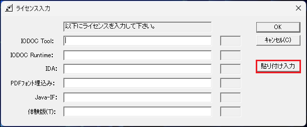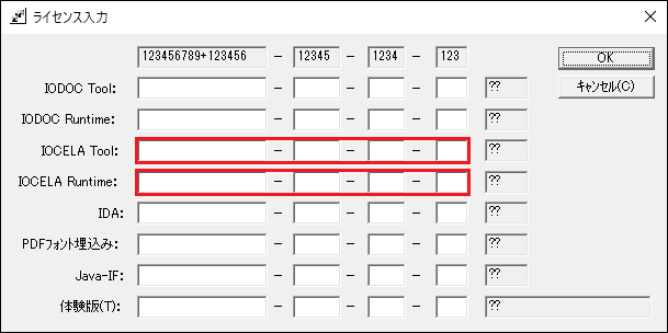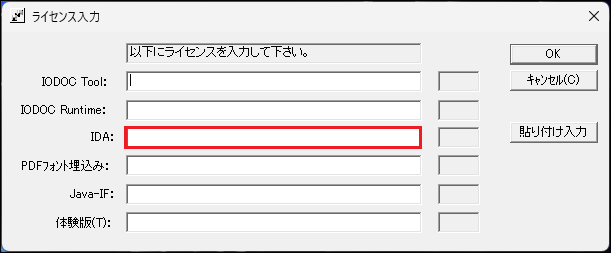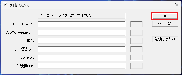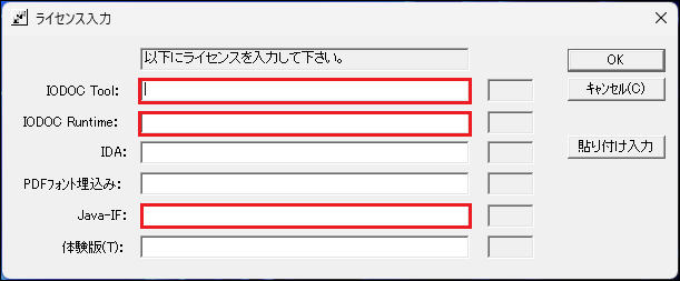 IOWebDOC のライセンスを「 IODOC Tool」、「 IODOC Runtime」、および、「Java-IF」欄に入力します。