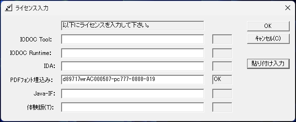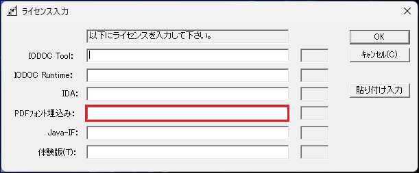 IOWebDOC 1.x の場合、フォント埋め込みのラインセス入力は不要です。