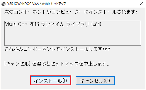 コンポーネントインストール画面が表示された場合、「インストール」をクリックします。