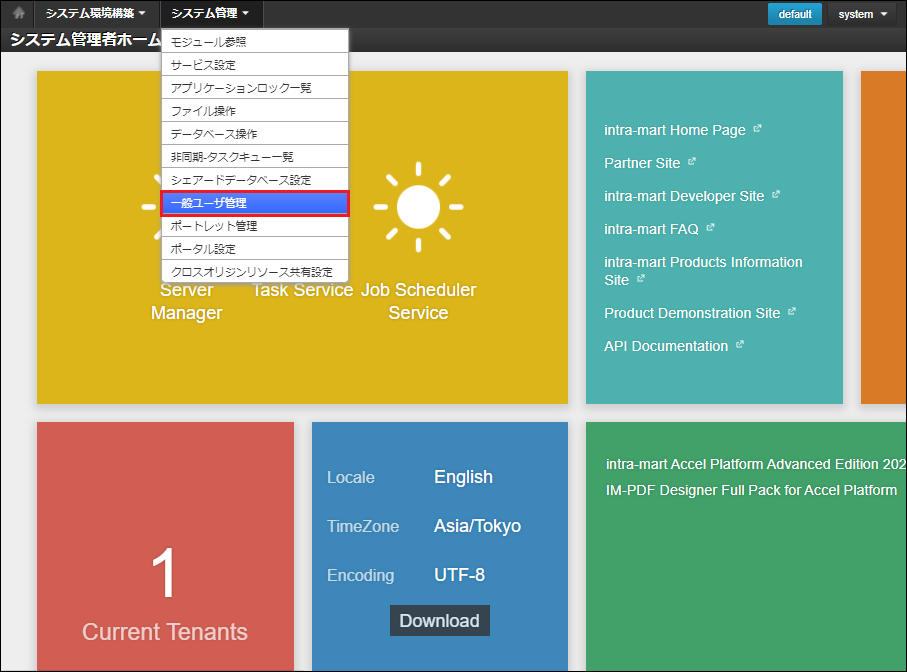 「システム管理」-「一般ユーザ管理」をクリックします。
