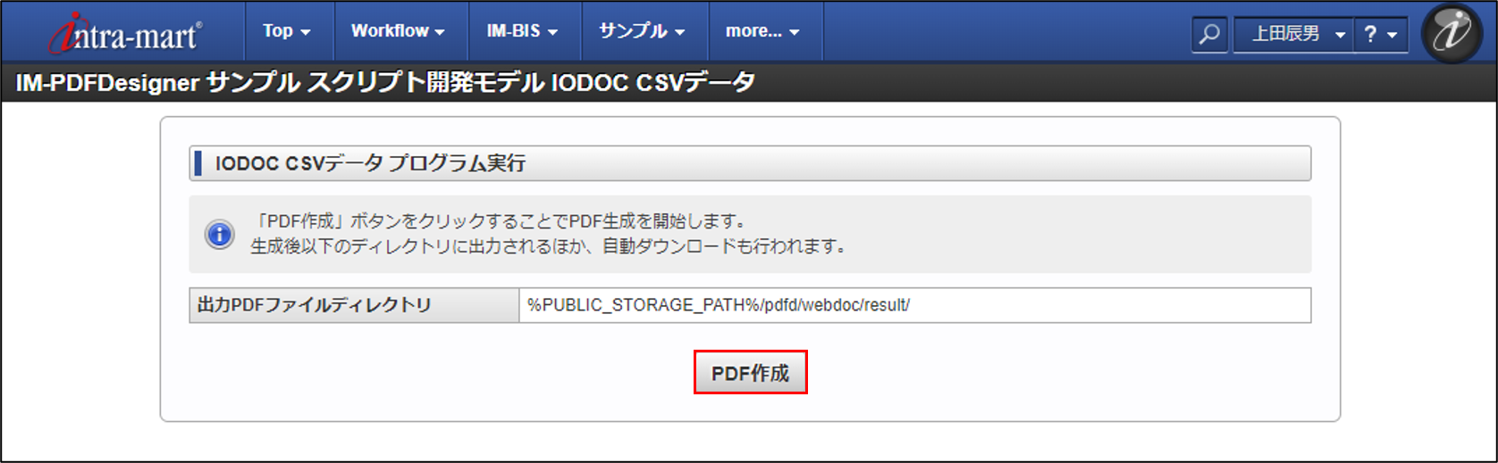 PDFデザイナー管理者< pdfsuper > を一般ユーザに追加することでサンプルデータの実行が可能となります。