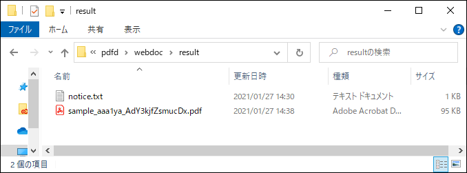 次の例は、< %PUBLIC_STORAGE_PATH%/pdfd/webdoc/result >の場合です。
