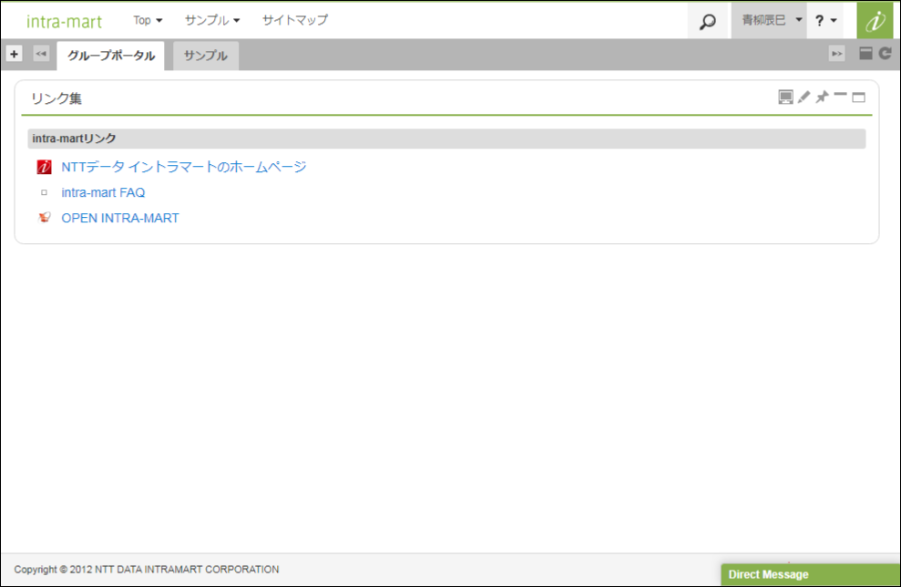 任意のユーザで、intra-mart Accel Platform にログインします。intra-mart Accel Platform のメインページが表示されます。intra-mart Accel Platform をログアウトすると、 VANADIS SecureJoin SSO Login Server のログアウト画面が表示されます。